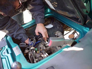 元々平成8年式のこの車もキレイな状態の外観とは違い、エンジン周りは少しくたびれた様子。
