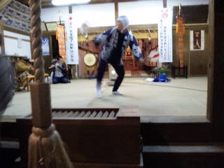 早速、次男坊が近隣の温かく盛り上がっている神社の神前にお招き頂き、めでたくひょっとこの踊りを披露させて頂きました!