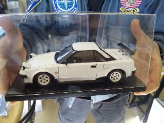 以前私が当社のデモカーとして乗っていた大好きだったMR-2そっくりに作ってくれた模型だったんです!!
