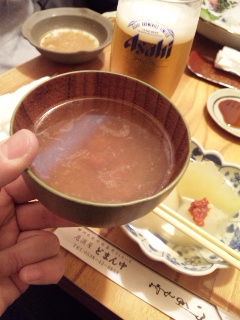 かすれた私の情けない笑い声を心配してか、優しいマスターとママが喉に良い大根のスープを出してくれました!