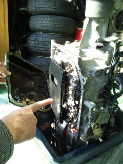 普段はオイルがタップリと入っているオイルパンを外すと、オートマチックトランスミッションの一見複雑な内部が現れました!