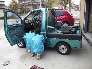 簡単な凹みを直すのにも削って叩いて埋めて、更に削って研いでを繰り返し、最後には車全体を紙で覆い塗装をし、全てを組みなおしてから完成って作業を見た彼らは今後「板金って高いから・・・・・・・」なんて言葉は一生言わないと思います。
