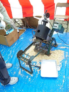 私のブースの前にはとっても不思議!?な紅白の幕が飾られている「ポン菓子!?」の機械がまるで銃声のような音を時々立てながら爆ぜていました!