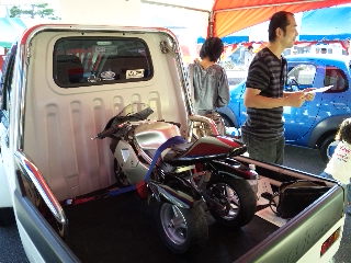 ミゼットⅡにはちょこっとお洒落に先日の薬師寺泰栄のドリームカー倶楽部のビンゴで当たったトライクを載せてみました!