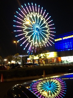 昨夜出張帰りに見た、湖面に写る花火のように綺麗な愛知県の伊勢湾岸道の途中にある刈谷ハイウェイオアシスの観覧車。