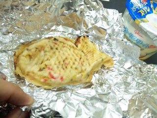 続いてはいつも嵐のように色々な差し入れをしてくれる自衛隊の飛行機からポルシェに乗り換えた!?Sくんのたいやき風のお好み焼き!