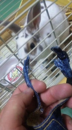 何と勝手に私がお気に入り!?の散歩用のハーネスベストを荒々しく鋭利な前歯で切断しているではありませんか!