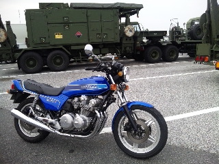浜名湖ではでっかい車の自衛隊の方々と出会う事が出来ました。元々戦闘機をイメージしてデザインされたらしいCB750Fなので記念撮影 !