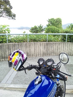 帰りは少しペースをあげ途中で止まり浜名湖を眺めて行こうと思っていましたが、同じ様に朝走りに来ていたフルカウルのレーシングマシンの様な「忍者」と出会ってしまい2台で走るというシーンになってしまいました‥‥