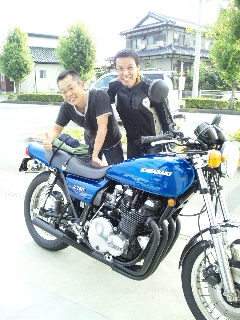 その後継のモデルの綺麗に乗られているブルーのZ750FOURに乗ってとある方が店に入って来ました。