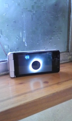 ブログとして日記に残したいので従業員さんに頼み、なんちゃって皆既日食観察写真を撮りましたが何だかむなしくなってます・・・・