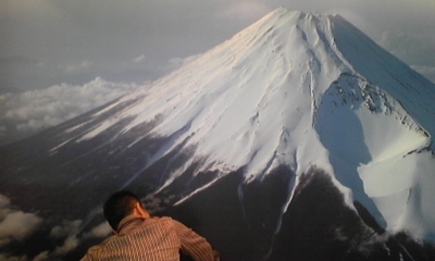 写真は記念撮影用に空港が用意してくれた富士山の背景!