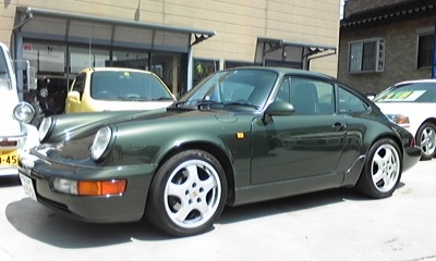 新しく仲間に加わったこの落ち着いたカラーのオークグリーンの92年式、ティプトロニックオートマチック、エアバック付き、6万キロ、964最終モデルのポルシェはいつも私が好みで選んでくる今までの雰囲気とは違っています。