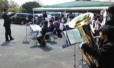 式が終わり外を見るとブラスバンド部のメンバーが帰宅する保護者の方々や初下校する新入生のために歓迎の演奏をしてくれていました♪