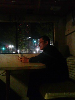 この贅沢な「部屋」は実はアメリカのキャンピングカー「ウィネベーゴ・ミニー」と言う車でとっても広い室内は6畳間程ありゆったりとしたソファーに大きなテーブルの4人席!更には水洗トイレに温水シャワールーム!ガスコンロにレンジにテレビに冷蔵庫にオーブン・・・・