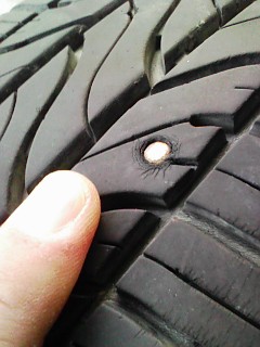 このまま走っていればいつか完全なパンク状態になっていただろうしタイヤを換えないといけない事態になり危険なだけで無く手痛い出費にもなってしまったかもしれませんね。
