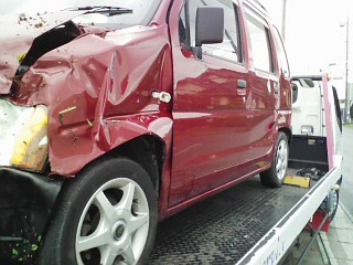 幸い大きな怪我はありませんが車の損傷を見てみると大きな衝撃を受けている事が解るので病院に行って貰う様に致しました。