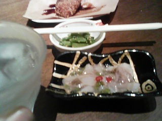 寝る前に旅館の近くの居酒屋で芋焼酎をいつもの通りに一杯やってます。