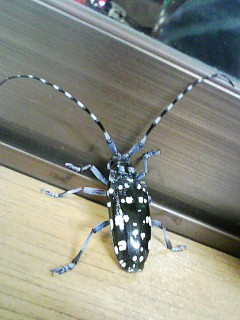 外に出てみると毎年遊びに来てくれる虫達の仲間のカミキリ虫が!