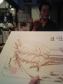 私が持っている安藤広重の東海道五十三次の蒲原の雪景色の絵、実はこれは絵では無くマスターが木の板に特殊な器具で焼き入れた「焦がし絵」なんです!