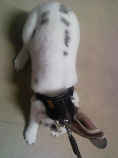 やっと苦労して付けたウサンポ用のベストハーネス!