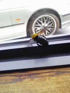 私の親指位のでっかい熊蜂だったのです!先日はツバメが入って来て温かい雰囲気だったんですが今回ばかりはそうはいきません!