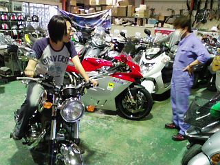 おおー!中央に見えるのは「MVアグスタ」ですか?違うかな??こういう写真を見てしまうと、またまたビックバイクが欲しくなってしまいます・・・。「大人になるな、男になれ 男とバイクは全身あるのみ」