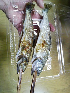 みっちゃんのブログで紹介されていた「ヤマメの串焼き」を本人が私のコメントを見てワザワザ買いに行ってくれました・・・多分!?(笑)