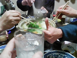 熱々の鍋を囲み皆でツツキ合う瞬間! 本当に一緒に頑張って来て良かったと思いました!!