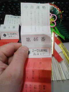 思わず!4番!?の大吉を見せてくれた仲間の奴まで興奮してしまい財布の中に入れちゃってました!