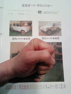 今日の役員会で発表された次回の出展車両は何と!昭和39年式のキャロルと63年式のジムニーを使い合体させたスペシャルカー!