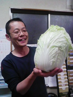おおー!いい白菜ですね☆この白菜をザク切りにして、桃屋のキムチの素を絡ませて食べてもおいしいかも♪やっぱ、地元が一番ですね!