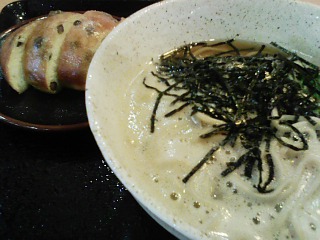 ヘルシーで栄養たっぷりなとろろそばに周りをカリッと香ばしく揚げたむかごパン!