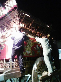 我が町の祭典準備もあと少し!!若い祭り青年達がいよいよ自慢の天幕の取り付けに入っています!