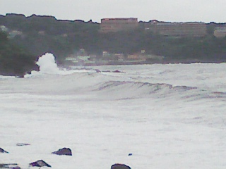 いつも台風の海って前浜や由比の「正面から」見る波しか見たことがありませんでした。