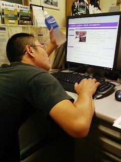 なんだか哀愁の漂う(??)背中、左手にはポカリ!