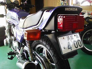 番号をやっぱり変えるかナンバーの下あたりに「これは750ccです!タイヤは細いけどCB750Fってバイクです!」何てもう一枚プレートをぶら下げたりするしかないですかね・・・・・(笑)