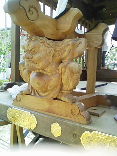 一本の太い木から彫り上げた「力神!」が近隣の町内には無い迫力をかもし出しています!