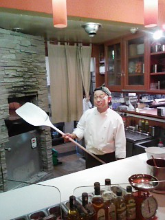熱い釜の前で手際よくピザを焼くヘアスタイルも熱い男店長Oにより夏風にサッパリとした情熱の男もっちぃさん!