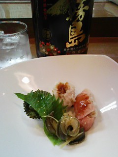 お酒の前のお通し。 本来料理やつまみの出てくる前の「つなぎ」を「お通し」とか「付きだし」って言うらしいんですが