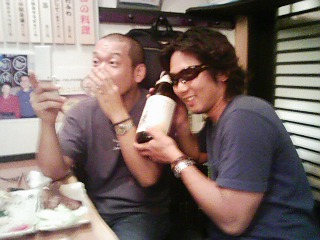 以前から、行きたくてしょうがなかった、「居酒屋 どまん中」さんに、店長Oさんとinoさんに、連れてって頂きました♪まずはビールでカンパイしましょう!五臓六腑に染み渡りますね♪「カツオのお刺身」もぺロっといっちゃいます☆店長Oさんオススメの芋焼酎を頂きます♪これは飲