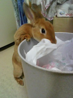 ゴミ箱を届かないところに置けばゴミ箱はいたずらしません。出来ませんから。
