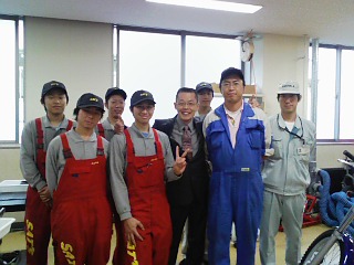 今度一緒に鈴鹿の300キロスーパーバイクレースに行く大学生の皆とトーク後に実習場でパチリ!