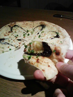 パスタもピザも美味しいですが、ここの私の最高のお気に入りが「茄子と肉味噌クリームのピザ」なんです。