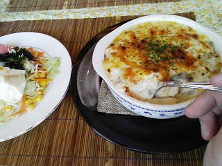 私のお気に入りのドリア。先日はカレードリア、今日はシーフードドリアで栄養補給。