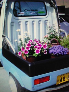 ミゼットIIでお客さんが当社のために育ててくれた綺麗な花を取りに行ってきた時の写真。