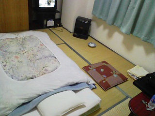 でも部屋に入ってみて大喜び!6畳ひとまのタタミ敷き、暖房は今時ファンヒーター!